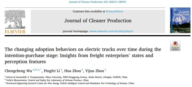 近日,betway必威西汉姆联的道路交通安全研究团队讲师巫诚诚在国际可持续发展领域顶刊Journal of Cleaner Production(一区,IF: 11.1)上发表题为“The changing adoption behaviors on electric trucks over time during the intention-purchase stage: Insights from freight enterprises’ states and perception features”的研究性学术论文。该研究工作得到了汽车测控与安全四川省重点实验室(QCCK2023-005)的资助。