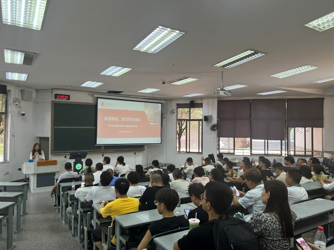 首先,黎青松欢迎各位新生和家长们的到来,并详细介绍了学院概况、学院历史、学院发展现状、师资配备以及学科架构,他强调了学院在汽车与交通领域的重要地位和影响力,并表达了对新生们的热烈欢迎和殷切期望。