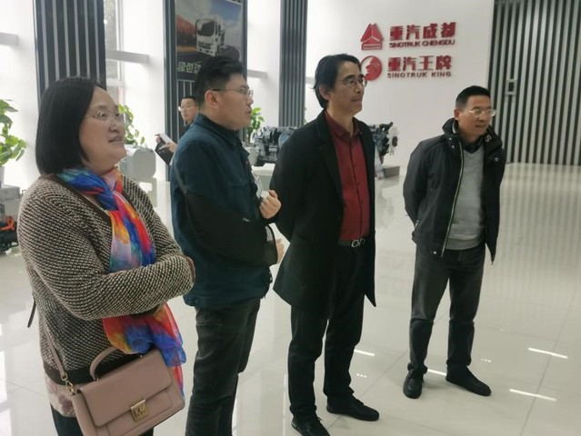 到达企业后,中国重汽成都商用车有限公司副总经理欧伟刚在企业成果展厅和生产车间中给费校长一行详细介绍了企业的产品和采用的新技术,特别是企业在新能源商用车方面所取得的成就。