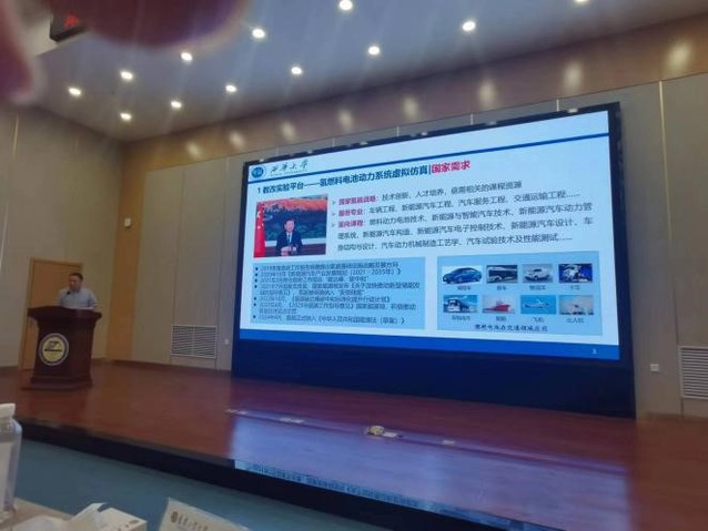彭忆强教授在会上作了“基于现代产业学院深化产教融合、服务应用型人才培养的西华实践”的交流发言。他向参会人员介绍了我院基于“西华大学—中国重汽集团成都王牌商用车有限公司工程实践教育中心”开展产教融合和基于“重汽王牌-西华大学产学研联合实验室”开展科教融汇的工作情况及取得的成效。邓鹏毅作了“虚实结合,融虚入实——氢燃料电池动力系统虚拟仿真实验改革探索”的交流发言。他分享了我院教师在氢燃料电池方面开展的科研活动以及基于科研成果和针对氢燃料电池实验过程“三高三难”问题建立氢燃料电池虚拟仿真实验系统的工作经验。彭忆强和邓鹏毅的交流发言得到了与会高校老师的高度关注,会下纷纷与我院参会老师进行了深入交流。