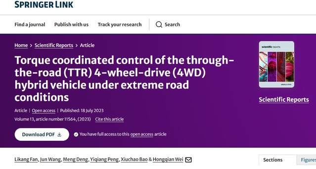 基于硬件再环平台,研究者继续探究了四驱混合动力在极端路况下的稳定性策略,并提出了可在线运行的协调控制策略。该策略考虑了多环境、多影响因素下的最佳扭矩分配,保证了整车始终工作在最佳的运动状态。相关论文已发表在《Scientific Reports》上,第一作者为樊利康博士。