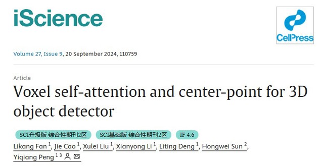 由于目前大多数基于体素的激光雷达目标检测算法采用的是3D卷积神经网络去捕获空间特征,极大的限制了空间中点云全局信息的表达。因此,研究者提出了一种体素自注意力辅助网络去弥补这一缺陷并取得了较好的效果。同时,为了将空间信息传递到特征通道层次,研究者在PV-RCNN算法中引入了通道注意力和空间注意力机制。相关论文已发表在CSCD核心期刊《激光与光电子学进展》上。在基于点的目标检测方法中尝试了仅使用Transformer编码器去构建点云关系并取得了较好的效果,该方法在北大核心期刊《应用激光》上发表。以上三篇论文的一作均为硕士研究生曹捷,导师彭忆强教授,樊利康为通讯作者。