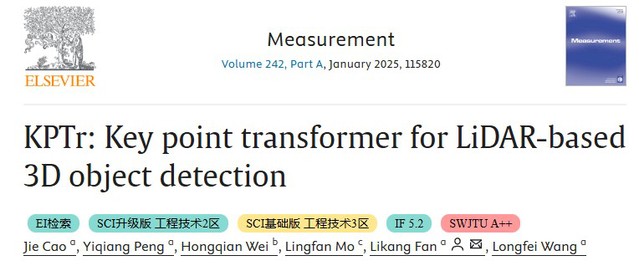 通过引入“Transformer”架构去构建点与点之间的依赖关系,提出了检测精度更高的目标检测方法。相关论文在中科院二区top期刊《Measurement》上进行了发表,第一作者为硕士研究生曹捷。