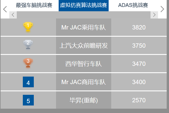 近日,由中国通用技术集团中国汽研(以下简称“中国汽研”)承办的中国国际智能产业博览会的重大赛事之一2020 i-VISTA自动驾驶汽车挑战赛在中国汽研礼嘉园区拉开帷幕,当天举行的是最强车脑挑战赛和虚拟仿真算法挑战赛决赛两项赛事,共有来自车企、科创公司、高校/研究机构在内的20支队伍参加当天的比赛。虚拟仿真算法挑战赛是今年新增的比赛项目。8月,经过激烈角逐,江淮乘用车、重庆邮电大学、上汽大众、江淮商用车、西华大学5支车队成功入围今年的决赛。