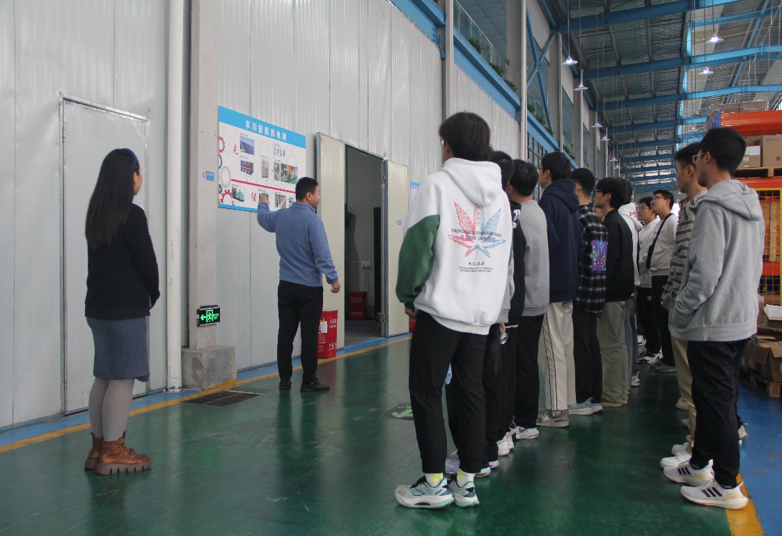 (学生通讯员:雷蕙兰)为进一步加强产学研融合,开展好实践育人工作,增强学生对车辆行业的理解与认识,2024年11月9日,我院新能源专业辅导员付娆老师带领24级学生前往丰川动力有限公司,同公司行政部洪英钰老师一起组织开展了“携手名企,启航未来”见学活动。本活动以分组交叉见学的形式保障学生们的参与度与体验感。由洪英钰带领同学们参观企业,探索前沿技术,了解其发展进程,并进一步认识企业人才培养需要,从而明确自己的职业规划。