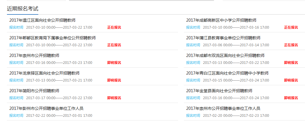 成都市各区市县2017年公开招聘教师公告
