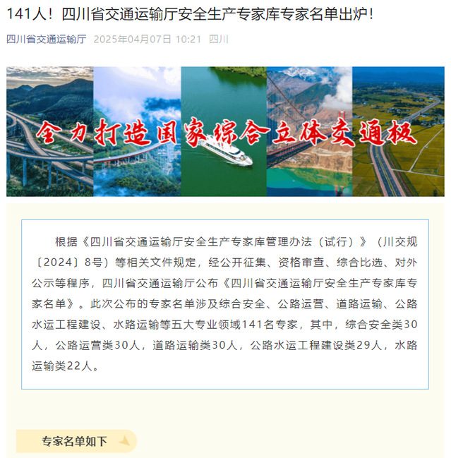 四川省交通运输厅官微截图