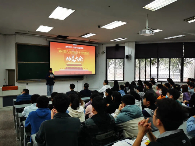 大会在嘹亮激扬的国歌声中拉开了帷幕。学院党委副书记裴西宏进行动员讲话。他简单回顾了近代以来中国共产党的奋斗史和发展史,并对在场的入党积极分子提出要求:第一,不忘初心,牢记使命,珍惜机会,专心学习,发挥带头作用;第二,拥护党的领导,严守党的纪律,以党员的标准要求自己和服务群众;第三,在成长成才的道路上应保持清醒头脑,在正确道路上前行,努力实现自身和社会价值。学院学生党总支书记王新兵就培训期间的相关纪律作了详细讲解。他希望学员们端正态度,高质量、高标准地完成学习任务。最后,党校指导老师常凯就本次党校培训的理论学习和实践任务作了安排,鼓励学员们进一步端正入党动机,以实际行动向党组织靠拢。