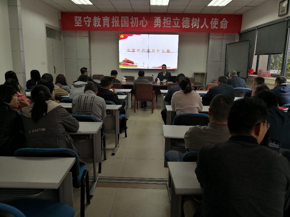4月1日,betway必威西汉姆联在学院会议室召开全体教工党员和入党积极分子大会,部署和开展党史学习教育工作。学院党委书记周华领学了《中国共产党为什么“能”》,从中国共产党所具有的,有远大理想追求,有科学理论引领,有选贤任能机制,有严明纪律规矩,有自我革命精神,有强大领导能力的等一系列优秀特质出发,科学研究,深入解答了中国共产党为什么能带领中国人民取得巨大成功,实现中华民族从站起来、富起来到强起来的伟大飞跃,创造世界惊叹的“中国奇迹”。通过这一课题的学习,学院广大教工党员进一步深刻了解了中国共产党的优秀特质和光荣历史,进一步坚定了始终坚持中国共产党领导、实现中华民族伟大复兴的信心和决心。