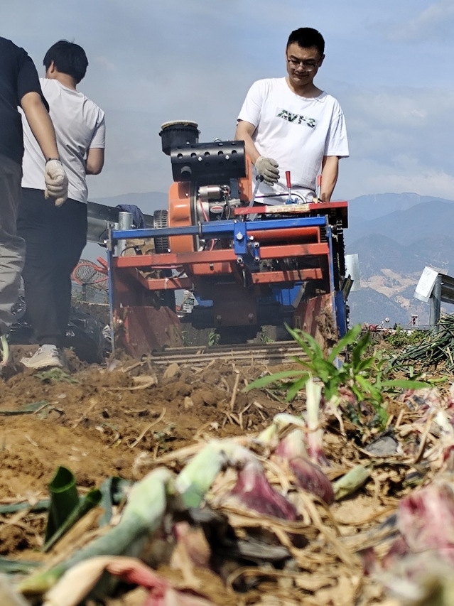 此次参与测试的轮式洋葱收获机,是西华大学产教融合的优秀成果,此前已历经多轮下地试验。研发团队广泛收集当地村民的使用反馈,结合以往测试数据,对该农机进行了针对性优化。通过改进轮胎抓地设计、优化动力传输系统、加固机身结构,成功攻克了轮胎打滑、空转以及机身抖动等技术难题,显著提升了农机性能。