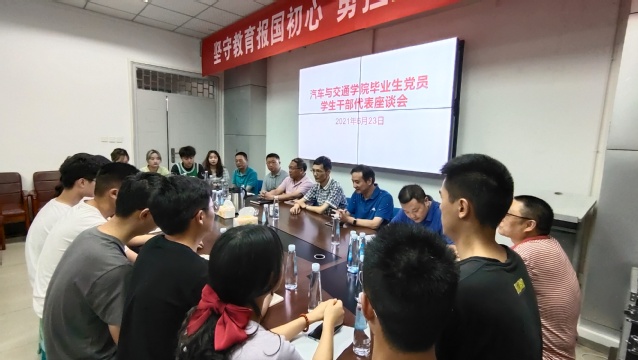 会议伊始,学院党委书记周华对学院老领导黄教授的到来表示热烈欢迎,简要说明了本次座谈会的目的:一是向各位毕业生同学对学校、学院各项工作的支持表示感谢;二是请各位毕业生党员、学生干部谈谈自身在校求学期间的各方面收获体会,并就学院未来发展提出意见、建议;三是向汽车学院2021届毕业生致以美好的毕业祝愿。他勉励各位毕业生在今后的人生道路中要始终牢记初心使命,不断加强党史学习教育,仰望星空,脚踏实地,将自己的理想抱负融入党和国家的发展中来。