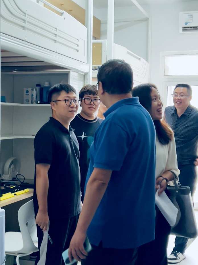 会议结束后,裴西宏带领孙小秋、杨雨时参观走访了25级新生寝室学生宿舍。宿舍里,老师们和家长们与同学热情交流,询问他们入住后的感受,叮嘱大家要保持宿舍整洁,尽快适应集体生活,也鼓励同学们在新环境中相互帮助、共同成长。同学们纷纷表示,感受到了学院的关怀,会努力营造温馨和谐的宿舍氛围,以良好的状态开启大学生活。
