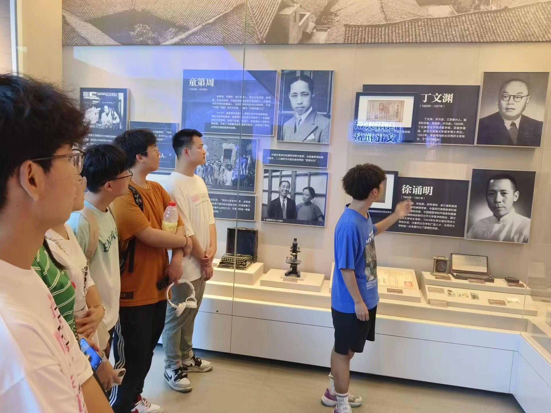 在团支书的带领下,40余名团员青年走进这座承载着民族记忆的博物馆。1940年至1946年间,当上海国立同济大学等学术机构五度迁徙仍遭战火威胁时,这座川南古镇以"同大迁川,李庄欢迎。一切需要,地方供应"的十六字电文,向流离失所的学者们敞开怀抱。展柜中泛黄的信笺、斑驳的教具,无声诉说着李庄在战火中守护中国文脉的壮举。同学们驻足于"中国建筑史"手稿前,同学们不仅感概:"在物资匮乏的年代,李庄人用最朴素的行动诠释了文化传承的担当。"