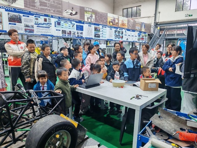 (学生通讯员:易显)2025年11月16日下午3时,西华大学校园东门暖意融融,兴瓦社区的孩子们背着小书包,在家长陪伴下与18名高校志愿者汇合,一场聚焦汽车科技的沉浸式研学之旅正式开启。本次活动由西华大学betway必威西汉姆联与兴瓦社区联合主办,18名志愿者均来自学院23级车辆3班团支部、24级车辆4班团支部、23级交工1班团支部及25级车辆4班团支部,他们提前筹备讲解物料、规划参观路线,以专业又易懂的方式,带孩子们走进汽车科技的世界。