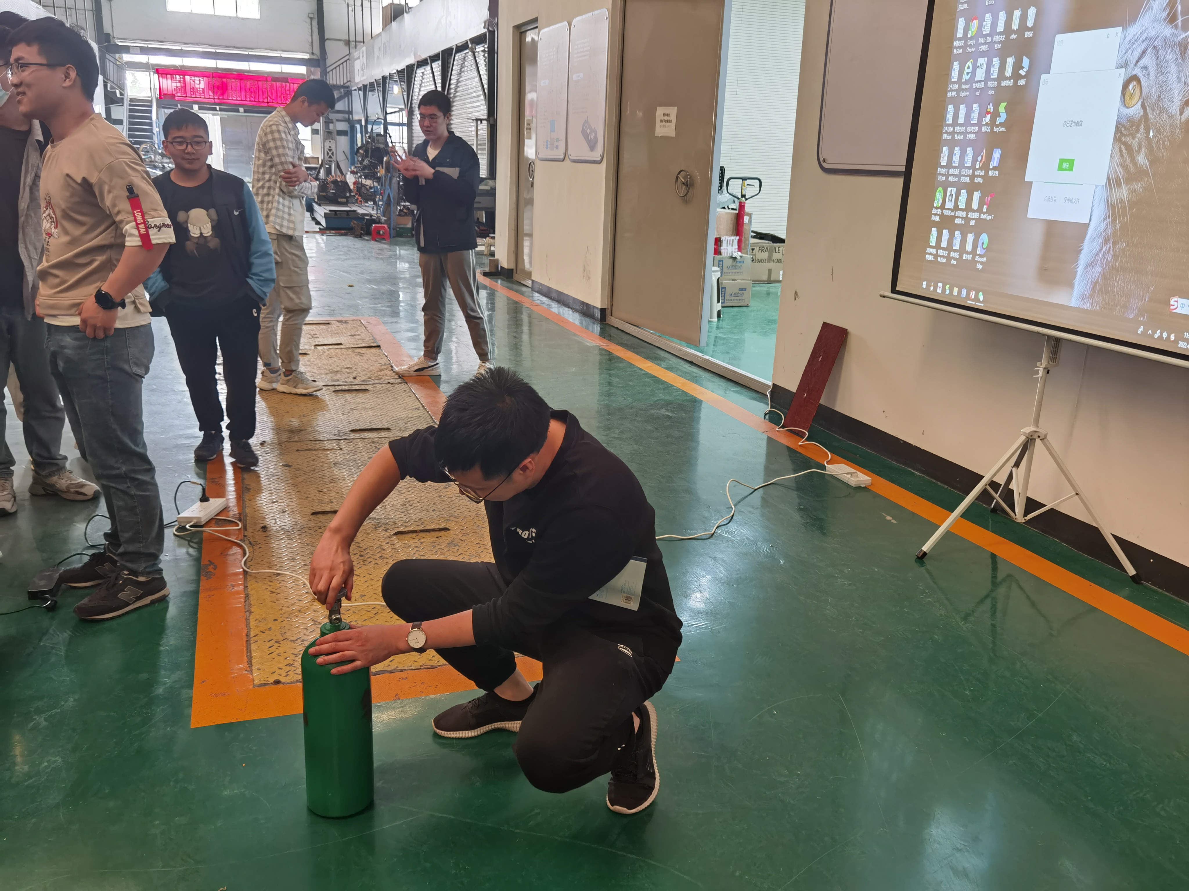 成都金克星气体有限公司岳兆信、尹浩瀚两位专家具有“危险化学品经营单位—安全生产管理人员”资质,在实验室现场对氢气的特性、氢气风险及预防、氢气起火应急措施、氢瓶安全操作等方面进行了理论与演练培训。