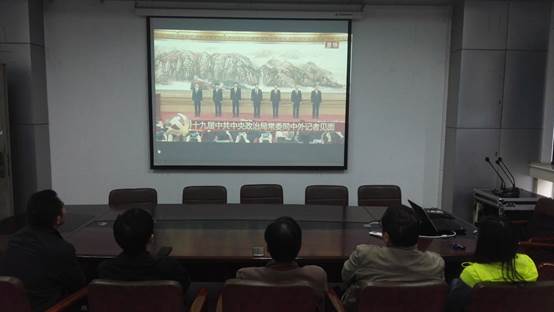 10月25日上午11:45,汽车学院组织党委中心组成员、部分教职工在学院会议室集中收看了新一届中央常委与媒体见面电视直播,聆听了习近平总书记的重要讲话。与此同时,在宿舍、在教室等场所,学生们以班级或党支部为单位,收听收看了见面实况。
