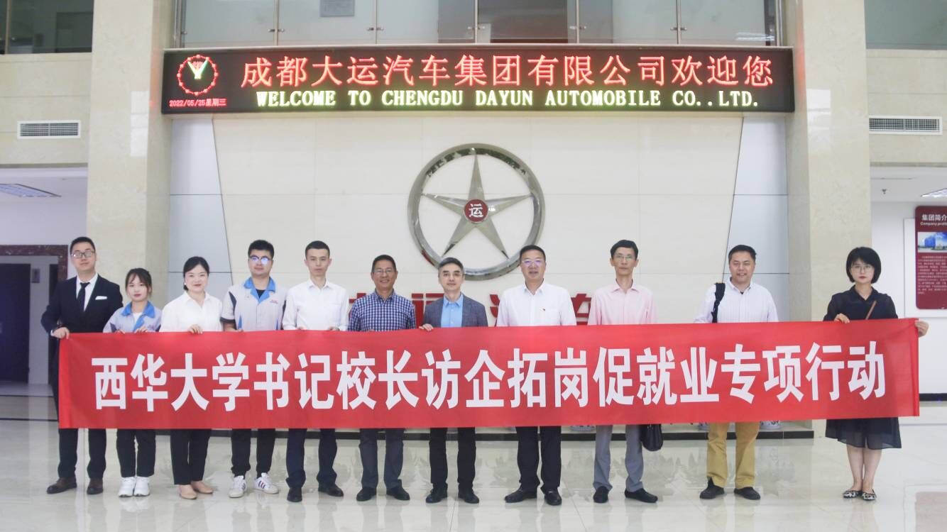 为进一步深化校企合作、推动毕业生实现更加充分、更高质量就业,5月25日上午,副校长李秋实带领betway必威西汉姆联党委书记周华、院长黎青松一行赴成都大运汽车集团有限公司开展“访企拓岗促就业”专项行动,同公司常务副总经理谢平、技术中心副总监满海涛、人力资源部主管林艳及校友代表座谈,了解企业生产经营及产品研发需求,并就人才培养、拓展就业、科研协作、研发装备开放共享等方面开展校企合作交流。