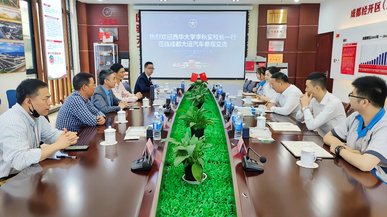 会前,在公司常务副总经理谢平的带领下,李秋实副校长一行参观了成都大运汽车集团有限公司的销售中心、党建展厅及经开区统战工作示范基地,乘坐体验了大运汽车集团纯电动MPV,充分了解公司的基本情况、发展历程、产品研发、所获荣誉、党建工作等方面的情况。
