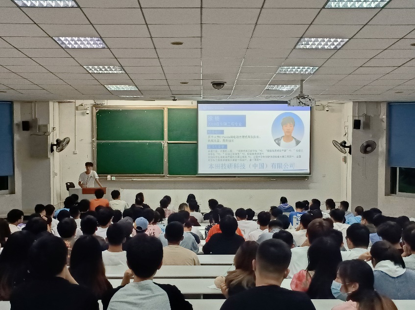 2018级车辆工程专业学生徐杨则讲述了自己成功拿下本田技研科技(中国)有限公司录用通知的经历。他提醒与会同学切勿为了逃避现实,不想进入社会而盲目选择考研。他说道:“无意继续深造的同学应早点认清现实,明确就业地点、行业与职务,多参加模拟简历面试大赛等活动,提前做好就业准备”。随后,徐杨分享了自己求职路上的经验与教训,从简历制作、岗位筛选、笔面试准备三个方面向同学们提出意见建议,并指出:“本科生求职不要太看重薪资待遇,公司所处的平台和未来发展前景才是更为重要的考量因素”。最后,他引用杨绛先生的话:“一个人之所以痛苦,是因为想得多,读书读得太少”,鼓励大家要勇敢的迈出求职的第一步,去尝试才知道自己适不适合,才能做出无悔于自己的选择。