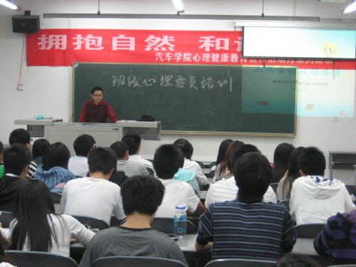 这次培训是“拥抱自然,和谐心灵”汽车学院心理健康教育宣传系列活动之一。此外还有缤纷多彩的活动,如主题班会,素质拓展活动等。希望通过这些活动,能让更多的人来关注大学生的心理健康,也希望同学们能敞开心扉,放飞梦想,拥抱自然。