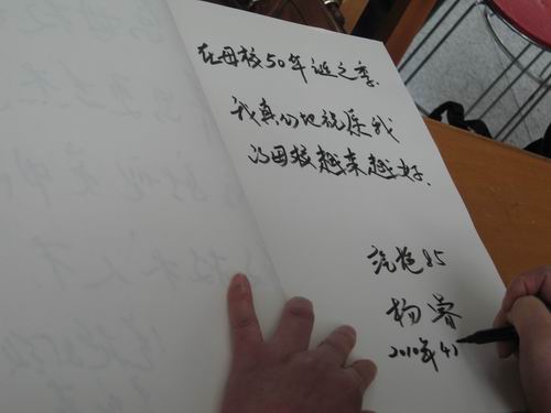 为支持学院发展,学长们慷慨捐赠,写下对母校的祝愿,愿母校更加繁荣昌盛。随后他们在校园里合影留念。