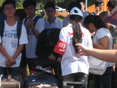 9月7日,2010级新生从全国各地陆续入学报到。由学院08级正式党员和预备党员组成的“党员先锋服务队”一大早就到迎新处为报名的新生提供服务。