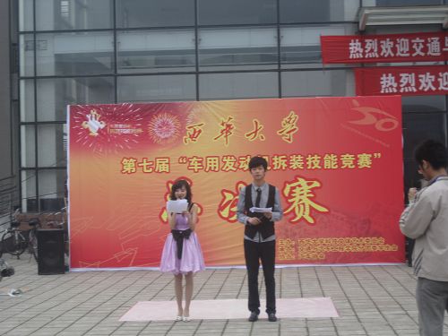 4月24日上午10:00,由西华大学科技文化艺术委员会主办、交通与汽车工程学院分团委学生会承办、汽车协会协办的“西华大学第七届车用发动机拆装大赛”总决赛在5D大厅前隆重举行。到场的嘉宾有四川交通职业技术学院院长陈士力,校团委副书记王博,西华大学交通与汽车工程学院分党委书记魏远文,院长黄海波,分党委副书记、副院长毕达平,副院长陈翀,副院长孙仁云,学生工作办公室主任王新兵,分团委书记龙俊如等。