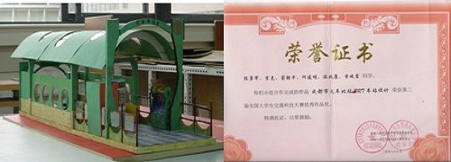 | 2007年,交通工程和物流管理专业学生分别参加了由高等学校交通运输学科教学指导委员会交通工程分委员会主办的第二届全国大学生交通科技大赛和由教育部物流专业指导委员会与中国物流采购联合会举办的第一届全国大学生物流设计大赛 。 由骆勇副教授指导的陈坚 许胜德 刘熙 王超深同学的作品《成都市蜀西路城市快速路交通管制优化方案》在数百件交通科技大赛原创作品中,入围全国24强,赴上海同济大学参加总决赛获得了优秀作品奖;由高红丽和刘晓晗老师指导的陈勇军、吉克、何建明、蒙银萍、曾晚霞、温兆康六位同学合作完成的作品《成都市火车北站BRT车站设计》也获得了该次大赛的优秀作品奖。物流设计大赛中由梁涛老师指导的田联平、王小强 、张丽、王天霞、高菊燕同学的作品《鼎助安得》进入了复赛阶段。 | 获奖证书及奖杯 | |  学生设计的BRT站台及获奖证书 | | |  赴上海参加总决赛的学生和老师 | |  颁奖典礼 | |