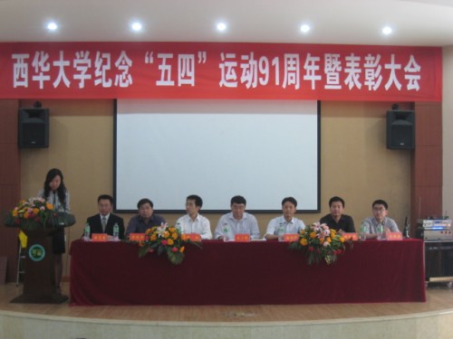 弘扬五四精神,争做时代先锋。5月4日下午2:00,“西华大学‘五四’运动91周年暨表彰大会”在临江苑宾馆隆重举行。西华大学党委副书记王小林,党委办公室主任黄进,党委组织部副部长唐润华,学生工作部部长王政书,校团委学生工作副书记蒋志勇、王唯洁等学校领导作为嘉宾出席了此次大会。