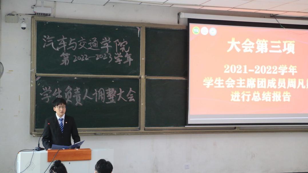 在振奋昂扬的《共青团团歌》中,本次大会正式拉开帷幕,与会人员认真观看了我院团委、学生会简上一学年工作成果介绍视频。随后,2021-2022学年学生会主席团成员周凡翔作年度工作报告,他总结回顾了上一届团委、学生会顺利开展的一系列活动,盘点了当前我院团委、学生会所取得的荣誉与成绩,并对今后团委、学生会的工作方向提出了建议。
