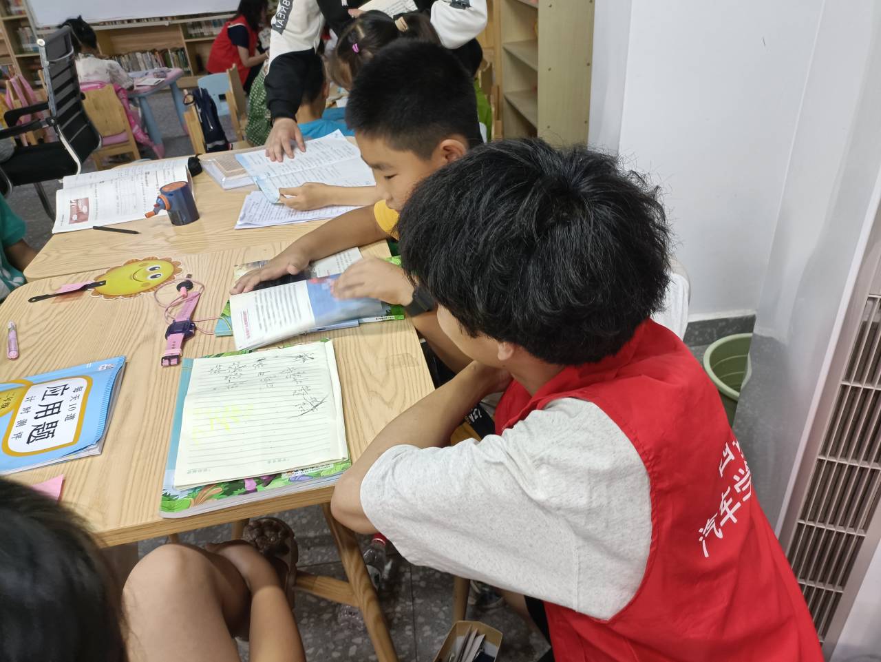实践团成员和孩子们一起阅读  宋磊 供图