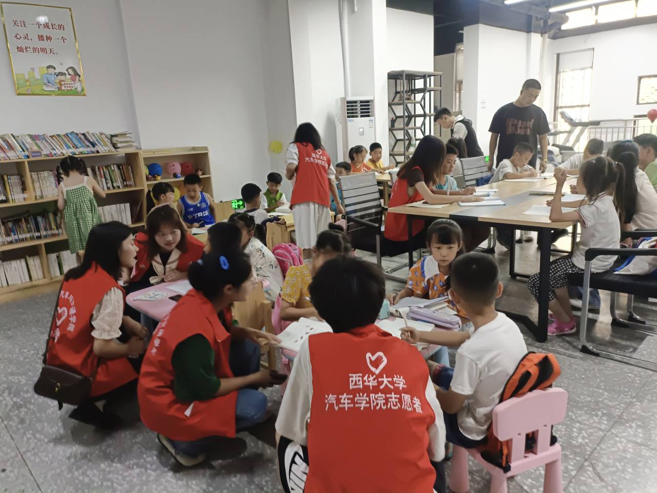早上830,来自 “青逐盛夏,相约宜起”实践团的成员从西华大学宜宾校区出发,9点抵达石岗社区居民委员会。在石岗社区志愿者的带领下,实践团成员组织开展了“假期小课堂”活动。该活动旨在为学习上存在困境的小朋友提供课业辅导服务和情感上的关爱与支持。