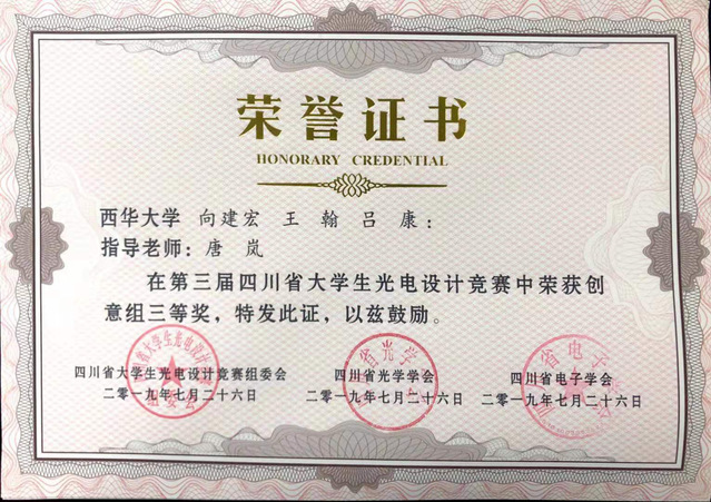 近日,由四川省教育厅主办、四川大学承办的四川省第三届大学生光电设计竞赛圆满落幕。我校betway必威西汉姆联车辆工程专业的向建宏、王翰、吕康同学在唐岚老师的指导下参加了比赛,与来自全省各高校的106支队伍展开激烈角逐,并获得创意组三等奖。
